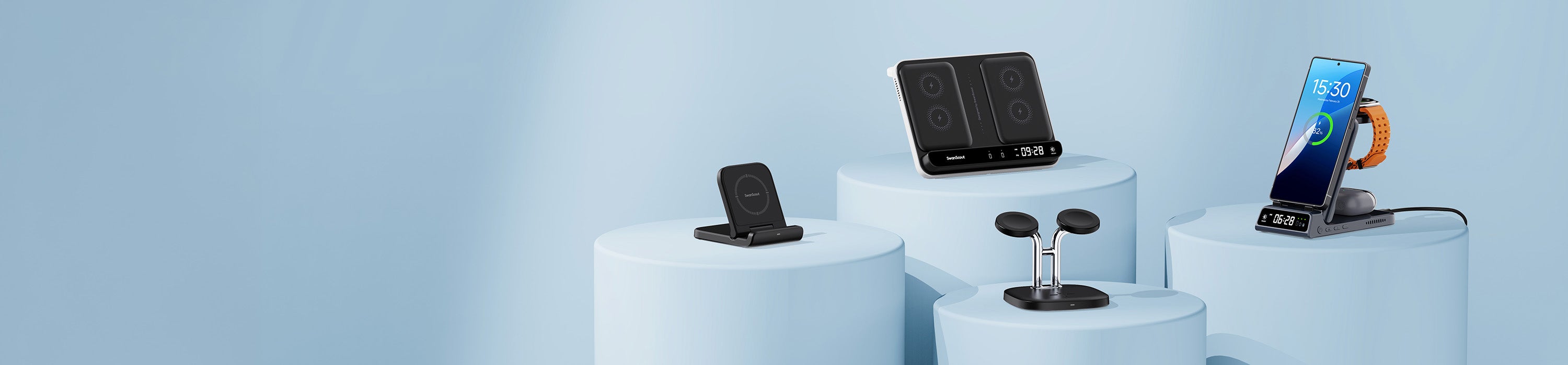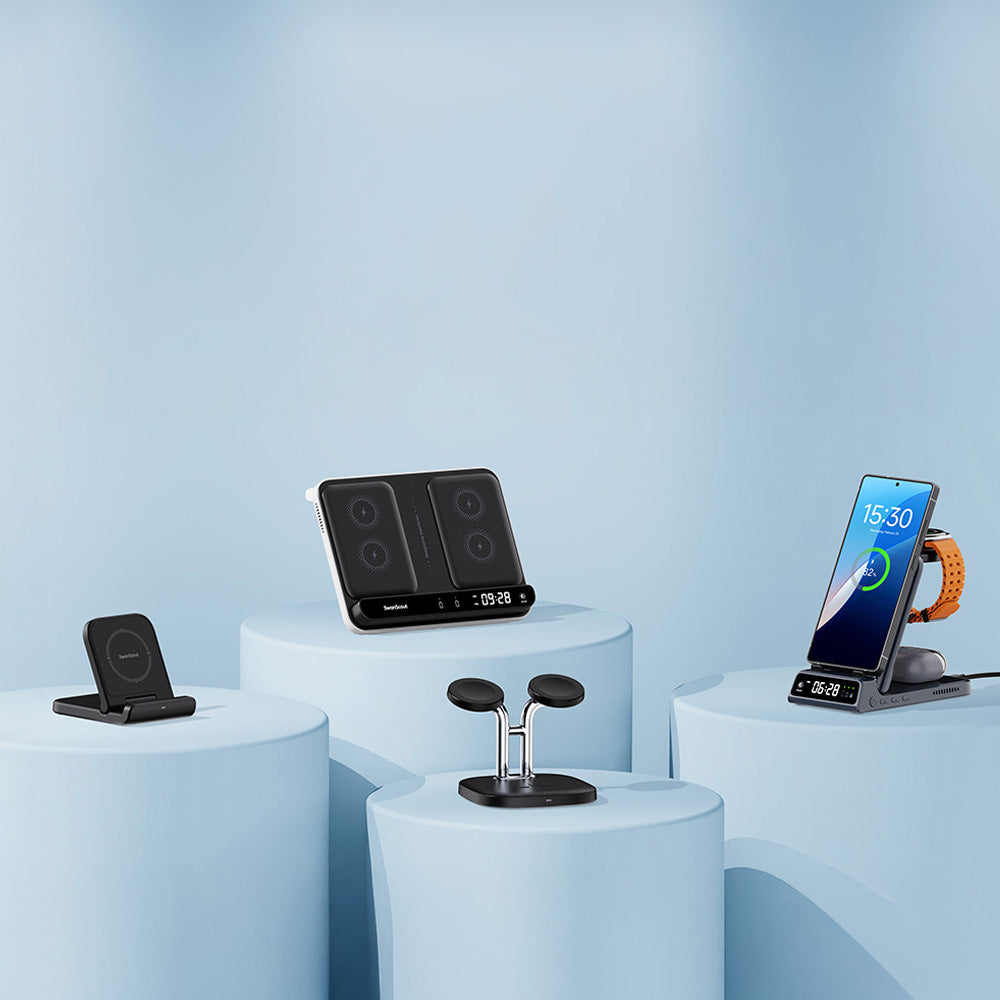 توفر سوان سكاوت مجموعة متنوعة من الشواحن اللاسلكية المصممة خصيصًا لمستخدمي سامسونج، بدءًا من الشواحن الصغيرة 3 في 1 للأفراد، وصولًا إلى الشواحن التي تدعم هاتفين وساعتين للاستخدام المنزلي. صُممت هذه الشواحن للاستخدام الشخصي والمشترك، وتتيح شحن أجهزة متعددة في وقت واحد، مما يقلل من أوقات الانتظار ويعزز الكفاءة.