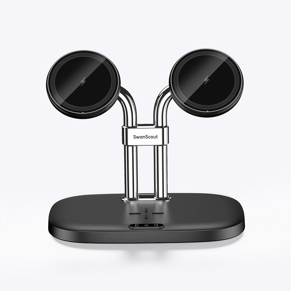 Die Apple-kompatiblen kabellosen Ladegeräte von SwanScout verfügen über eine Multi-Spulen-Architektur und eine präzise Ausrichtung, um MagSafe-fähige iPhones, Apple Watch Series 10 bis Ultra und Qi-kompatible AirPods zu unterstützen. Sie sind für das gleichzeitige Laden mit optimierter Stromverteilung ausgelegt, vermeiden Kabelsalat und sorgen für eine stabile Leistung bei allen Geräten. Ideal für den Einsatz zu Hause und im Büro, liefern sie effiziente, organisierte Energie, die auf das Apple-Ökosystem zugeschnitten ist.