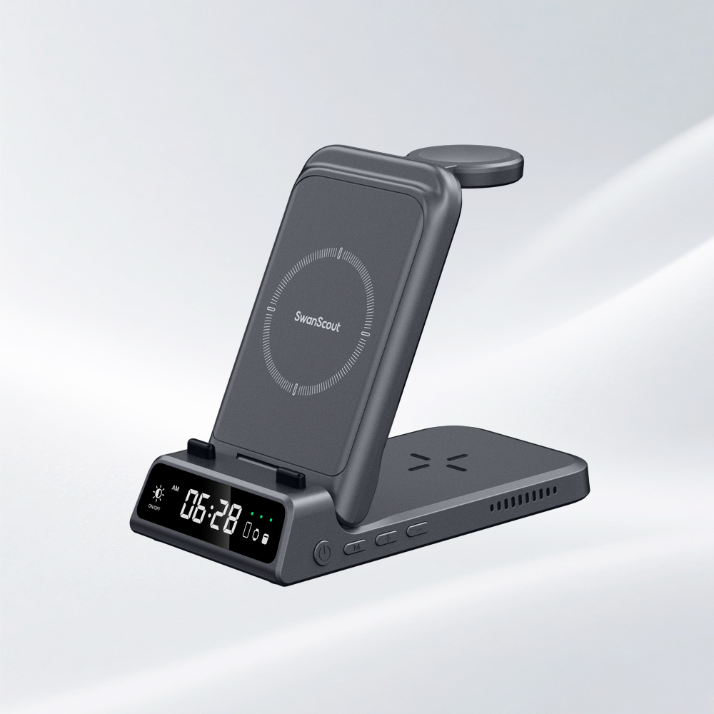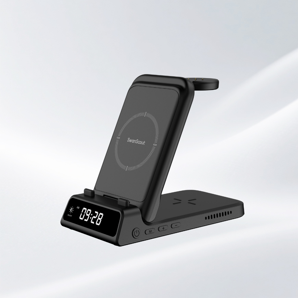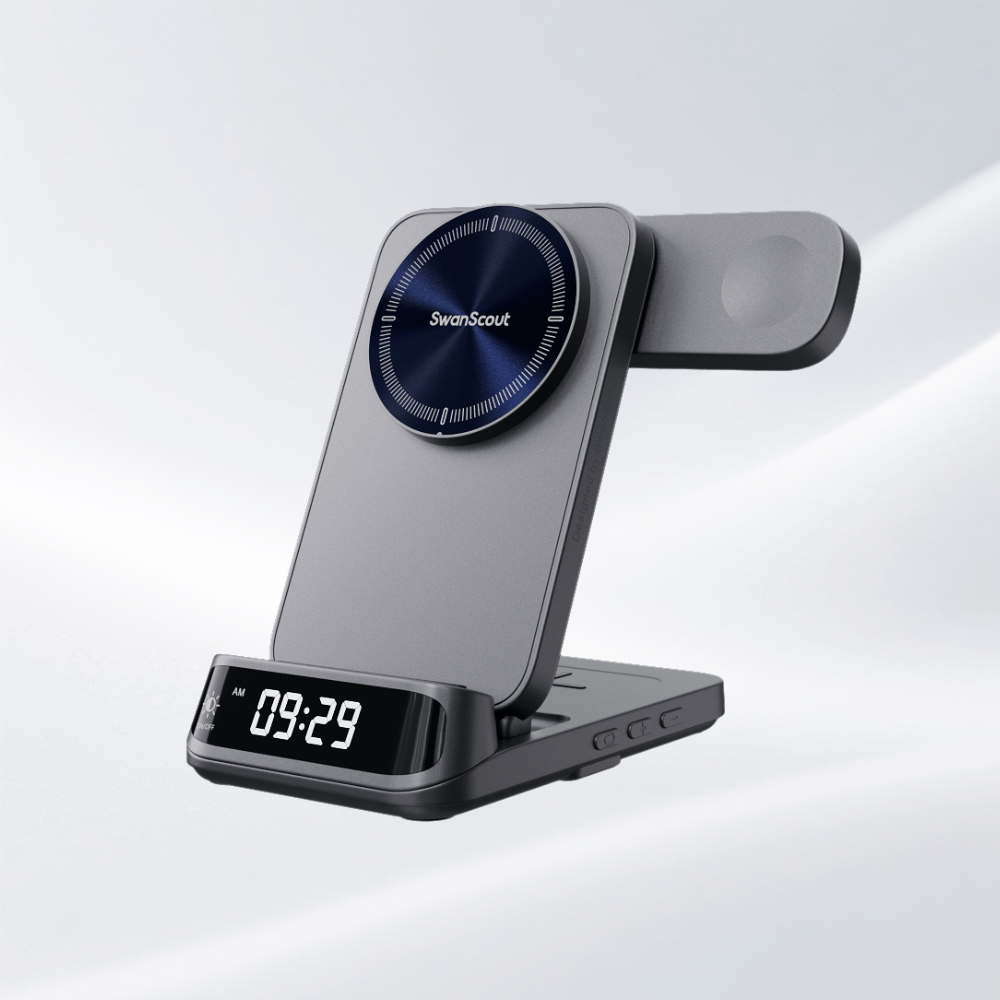 SwanScout’s clock wireless chargers bring together fast magnetic charging and a clear digital clock in one elegant unit. Whether at your desk, bedside, or study area, you can keep your phone powered and stay on schedule—all while maintaining a clean, organized space.