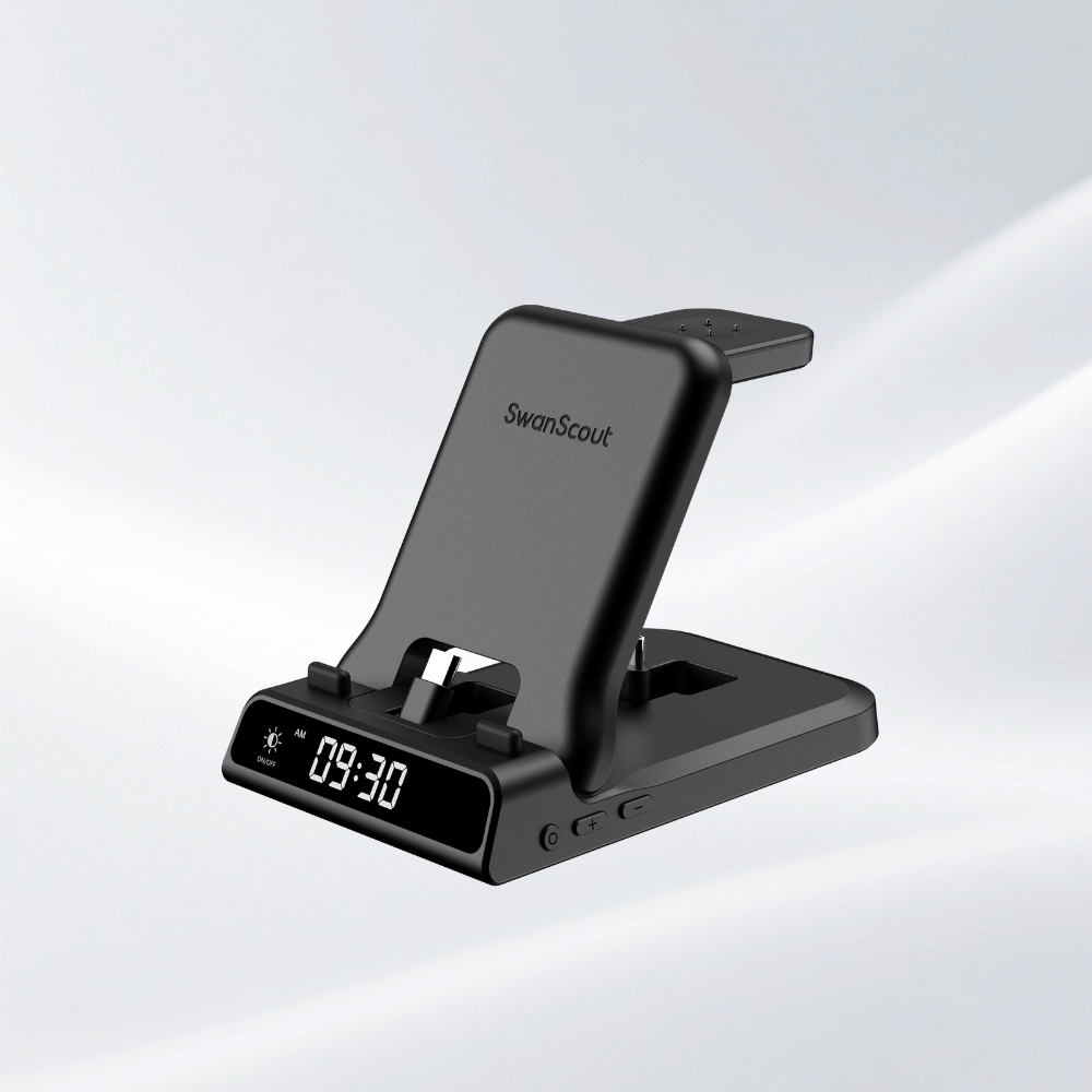 The swanscout 702G is a sleek Pixel charging station that keeps your Google devices powered while displaying time with clarity.Combining function and style, the swanscout 702G serves as a clock with charging station for both Pixel and Samsung users.
