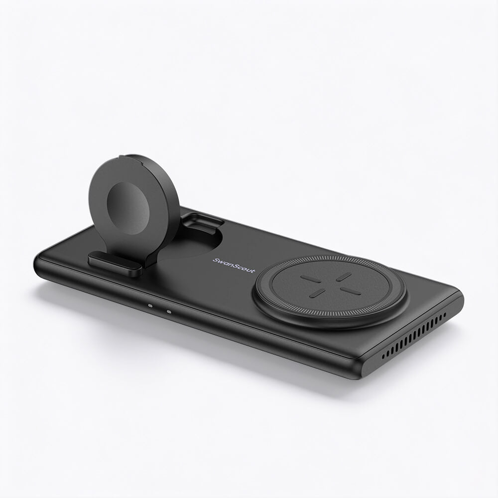 SwanScout 304M is a sleek iPhone charging station that simplifies power management for daily Apple device users.With iPhone wireless charger fast charging, the SwanScout 304M delivers quick, reliable energy without overheating.