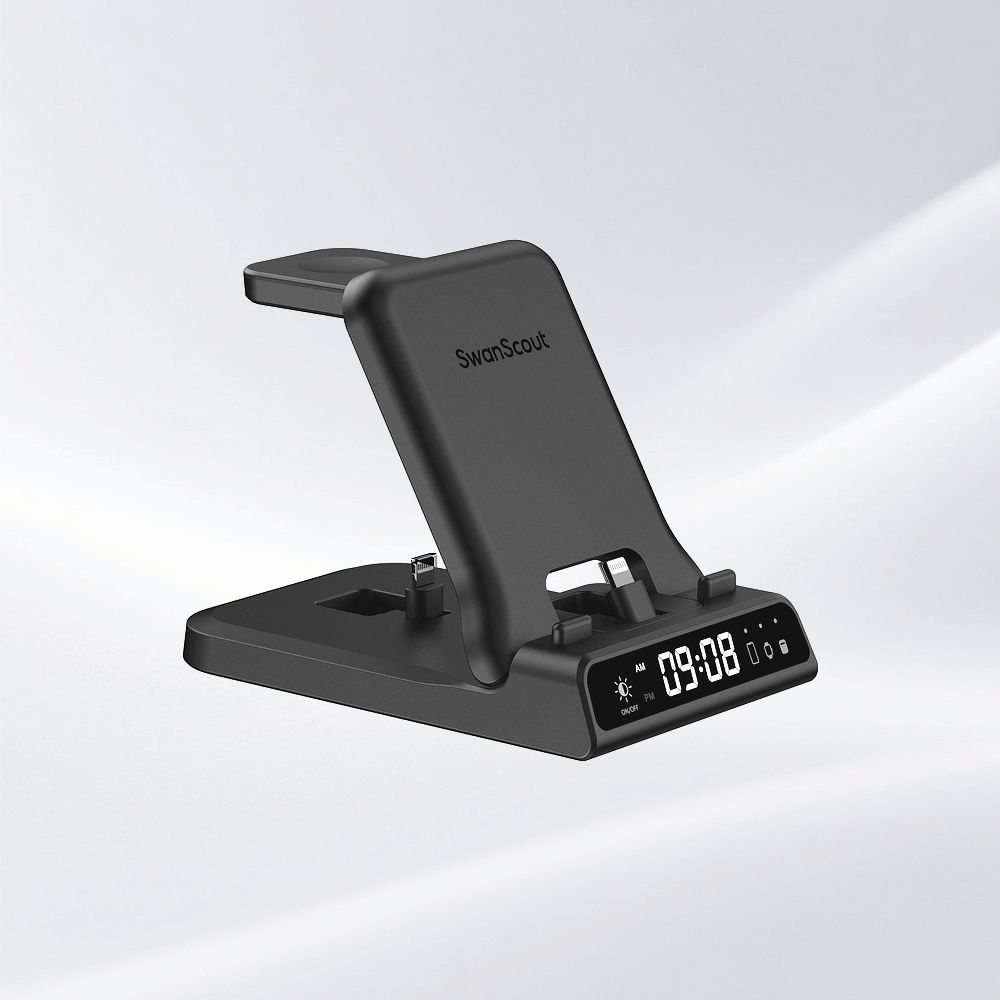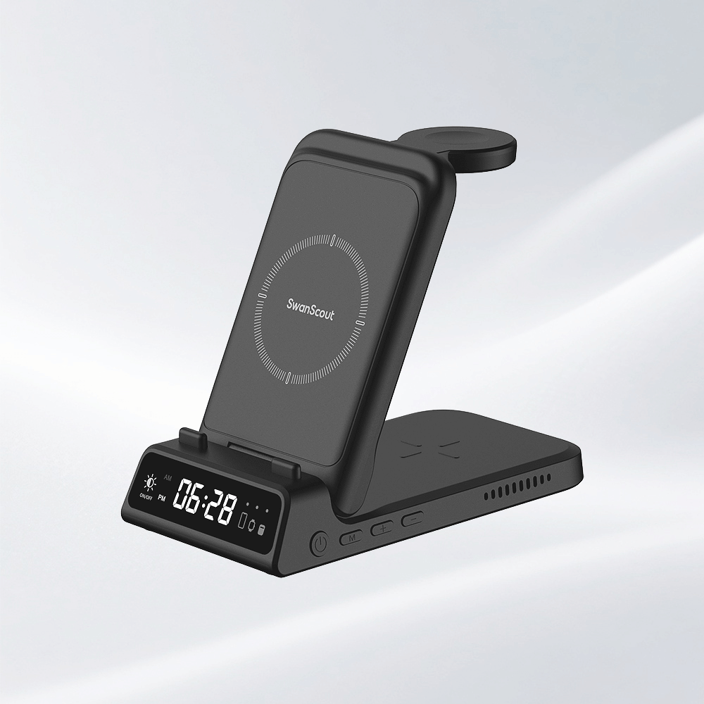 SwanScout 703A - 三合一苹果无线充电器(带时钟)