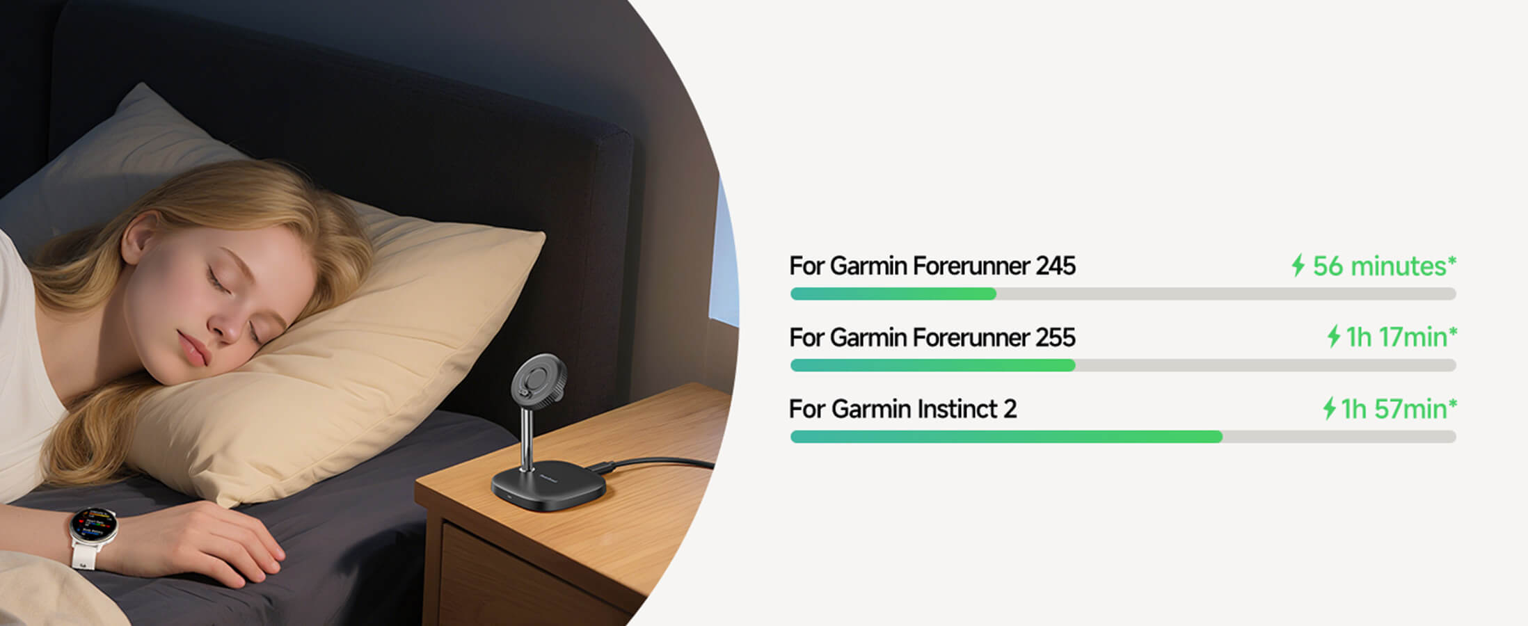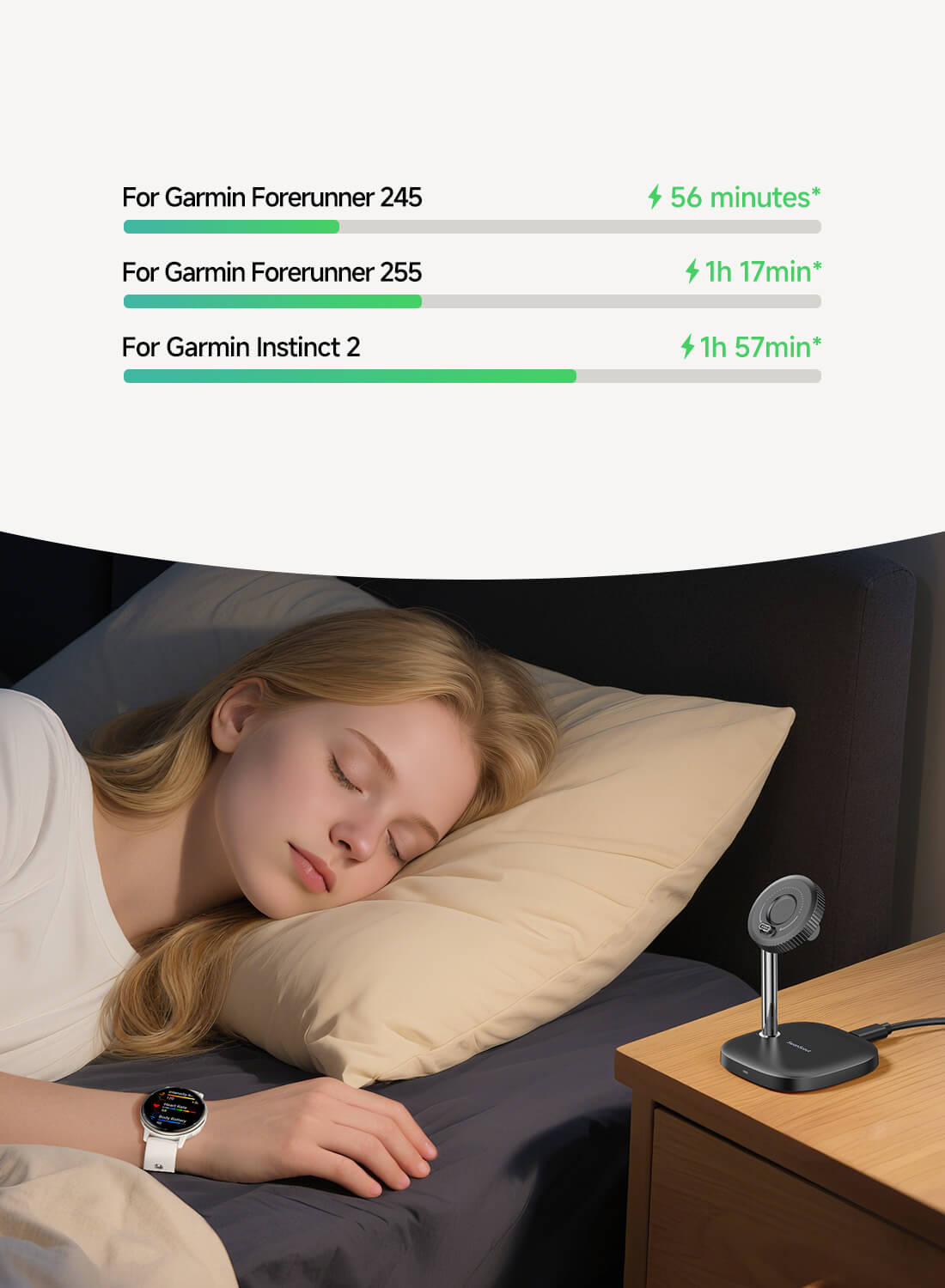 为您的Garmin手表在睡前快速充电,确保整晚监测您的睡眠状态。